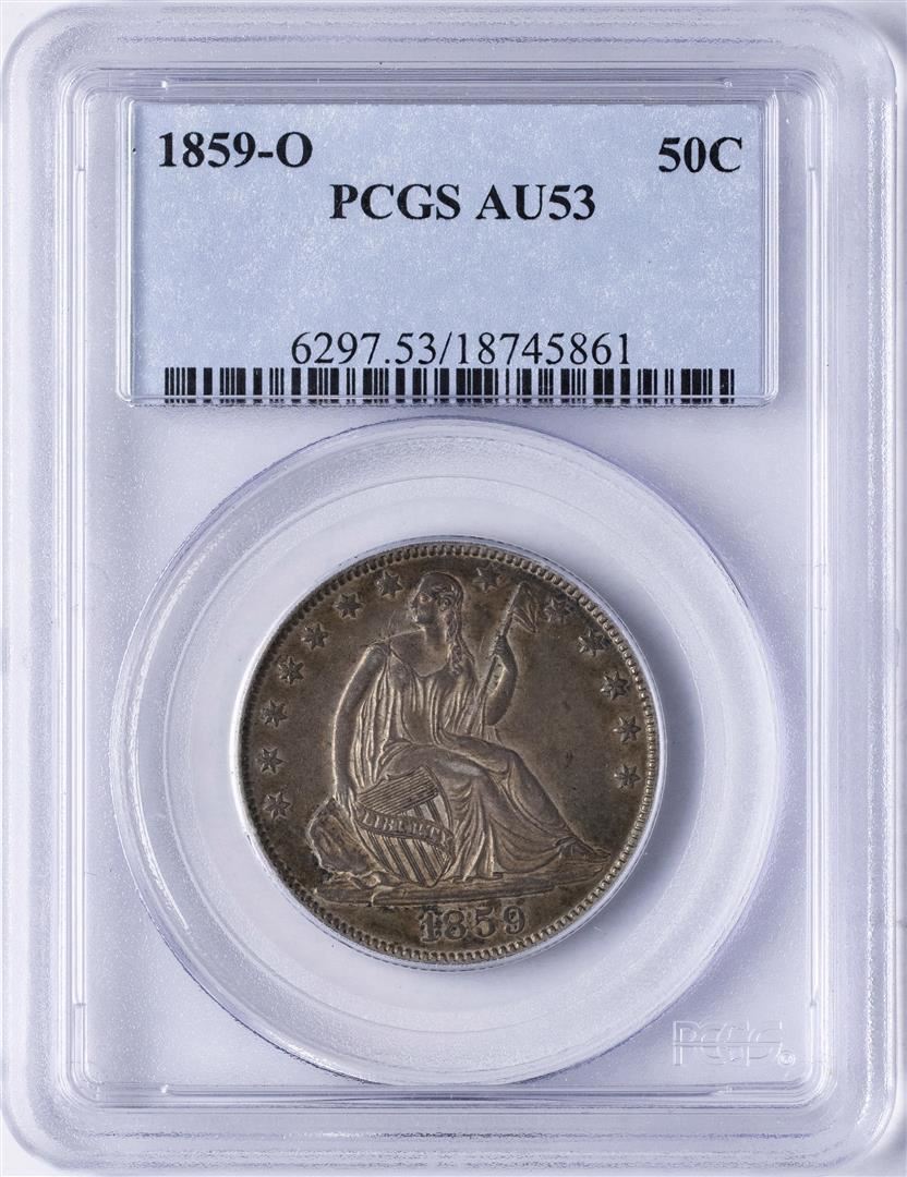 One 1859-O Seated Liberty Half Dollar Coin PCGS AU53. PCGS Graded.