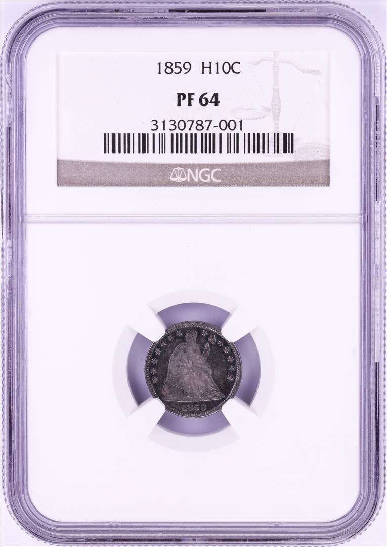 One 1859 Proof Seated Liberty Half Dime Coin NGC PF64. NGC Certified.