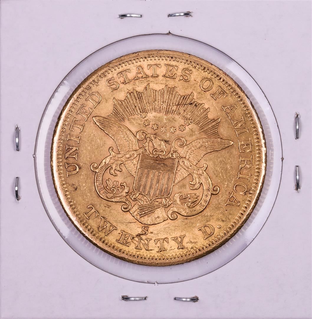One 1859-S Type 1 $20 Liberty Head Double Eagle Gold Coin.