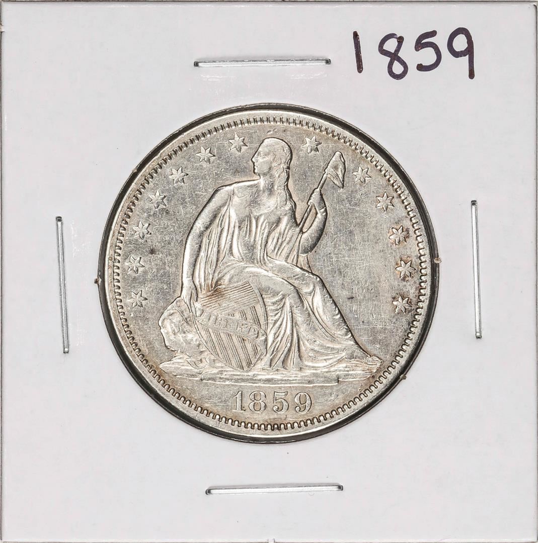 One 1859 Seated Liberty Half Dollar Coin.