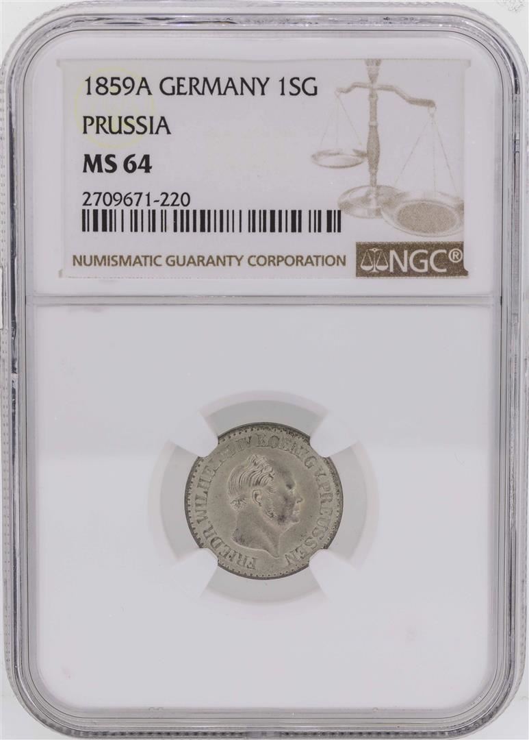 One 1859A Germany 1 Silber Groschen Prussia Coin NGC MS64. NGC Certified.