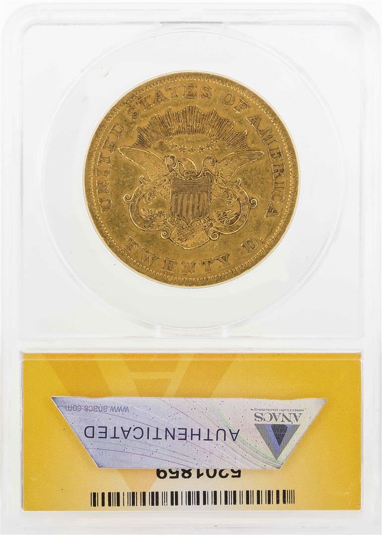 One 1860 $20 Liberty Head Double Eagle Gold Coin ANACS EF40. ANACS Certified.