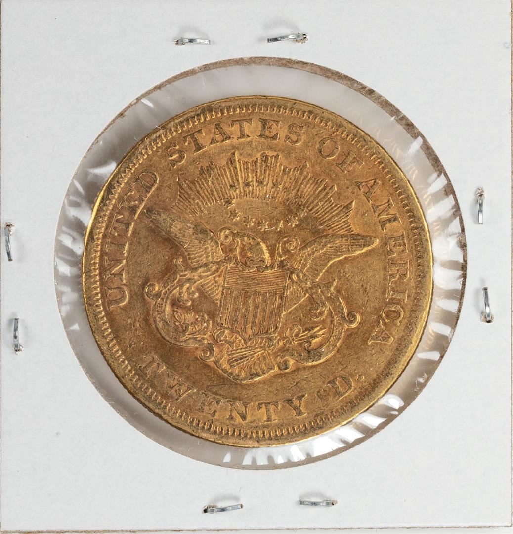 One 1860 $20 Liberty Head Double Eagle Gold Coin.