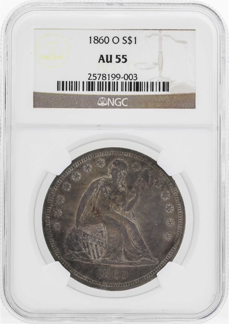 One 1860-O $1 Seated Liberty Dollar Coin NGC AU55. NGC Certified.
