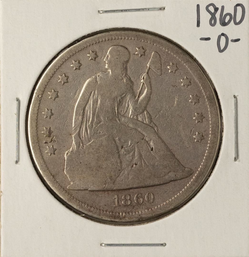 One 1860-O $1 Seated Liberty Silver Dollar Coin.
