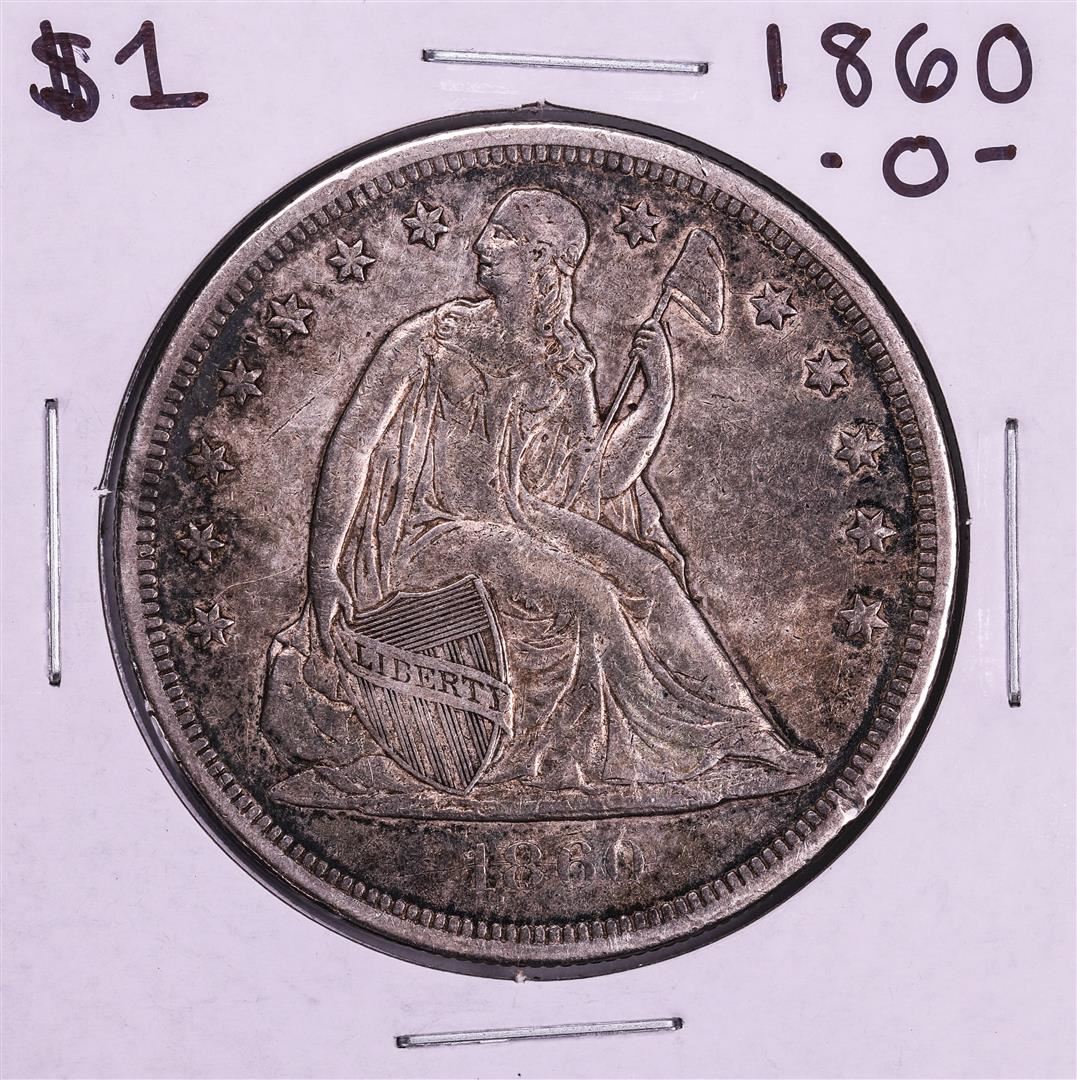 One 1860-O $1 Seated Liberty Silver Dollar Coin.