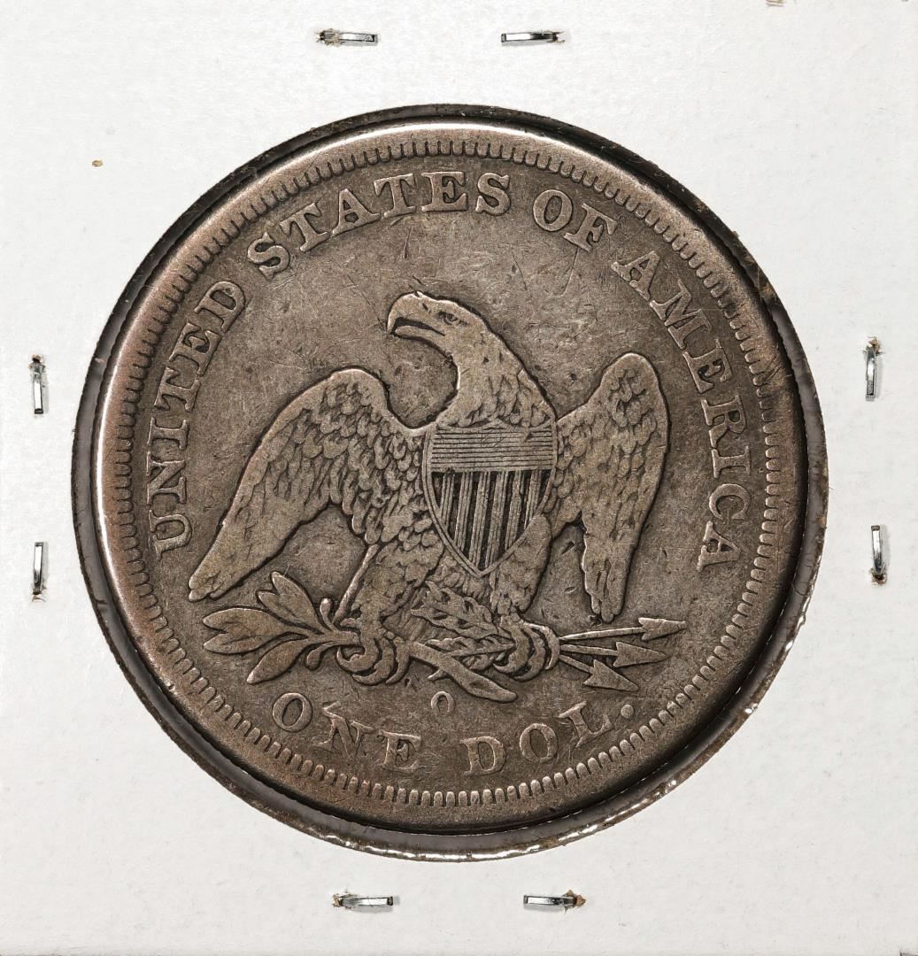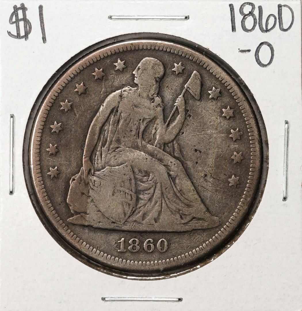 One 1860-O $1 Seated Liberty Silver Dollar Coin.