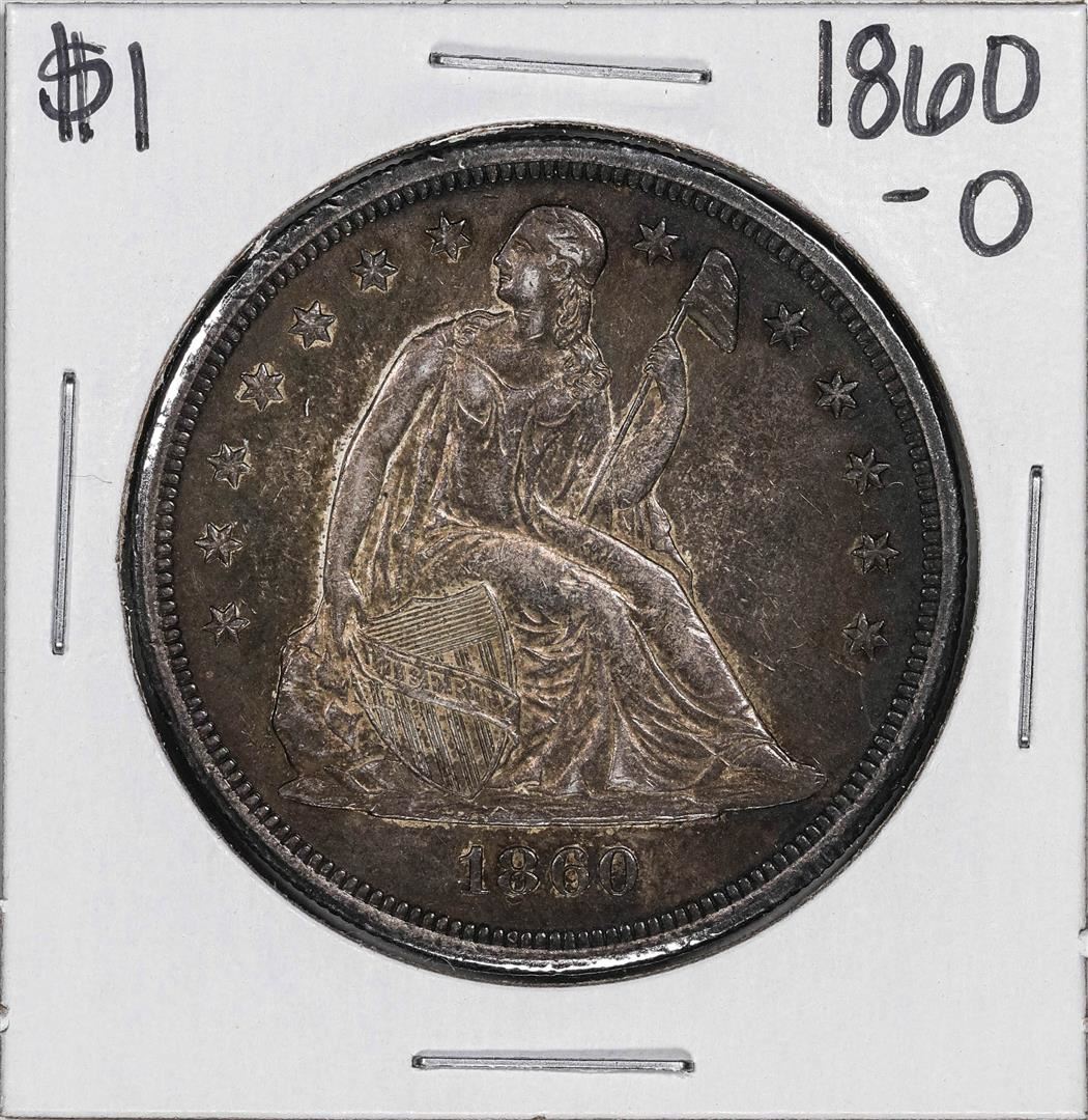 One 1860-O $1 Seated Liberty Silver Dollar Coin.