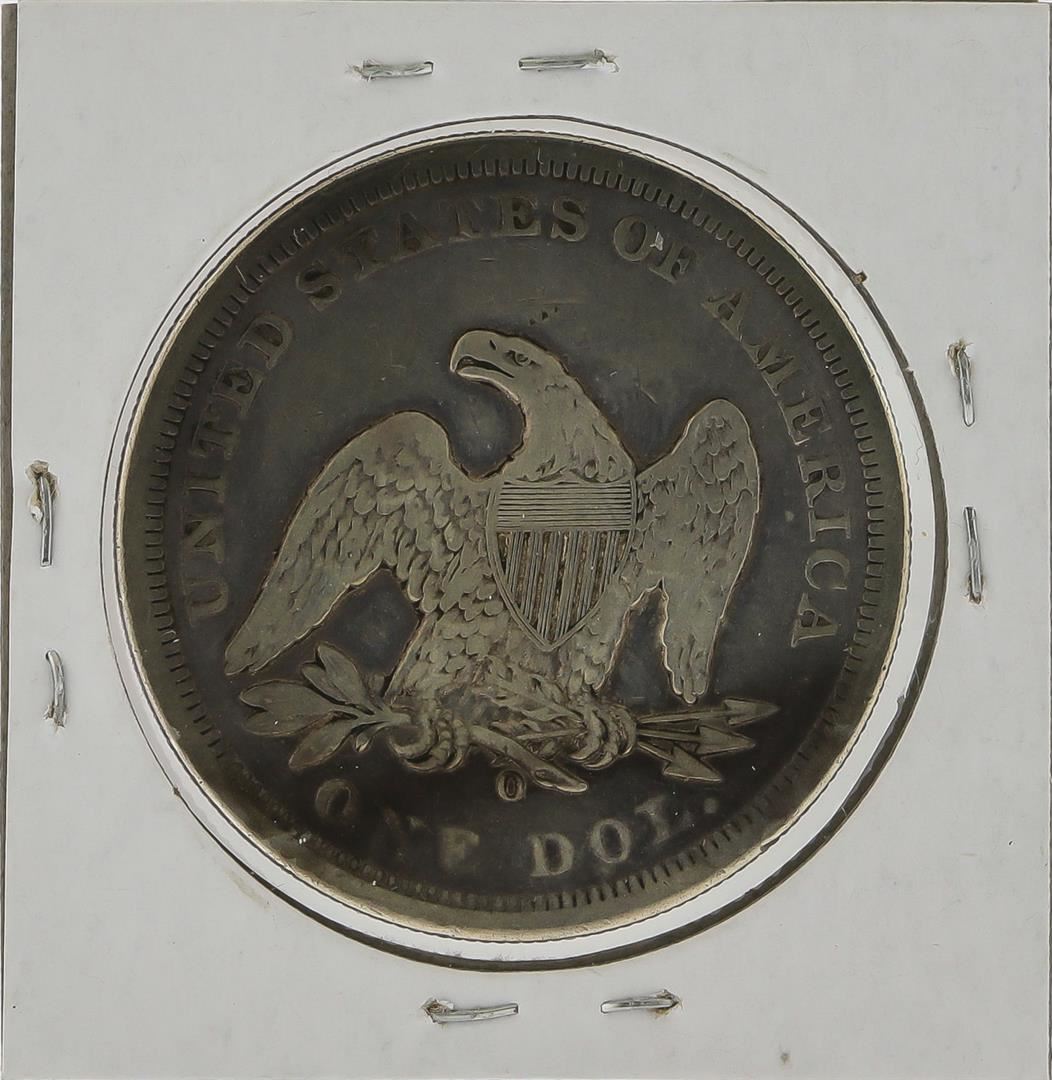 One 1860-O $1 Silver Liberty Seated Dollar Coin.