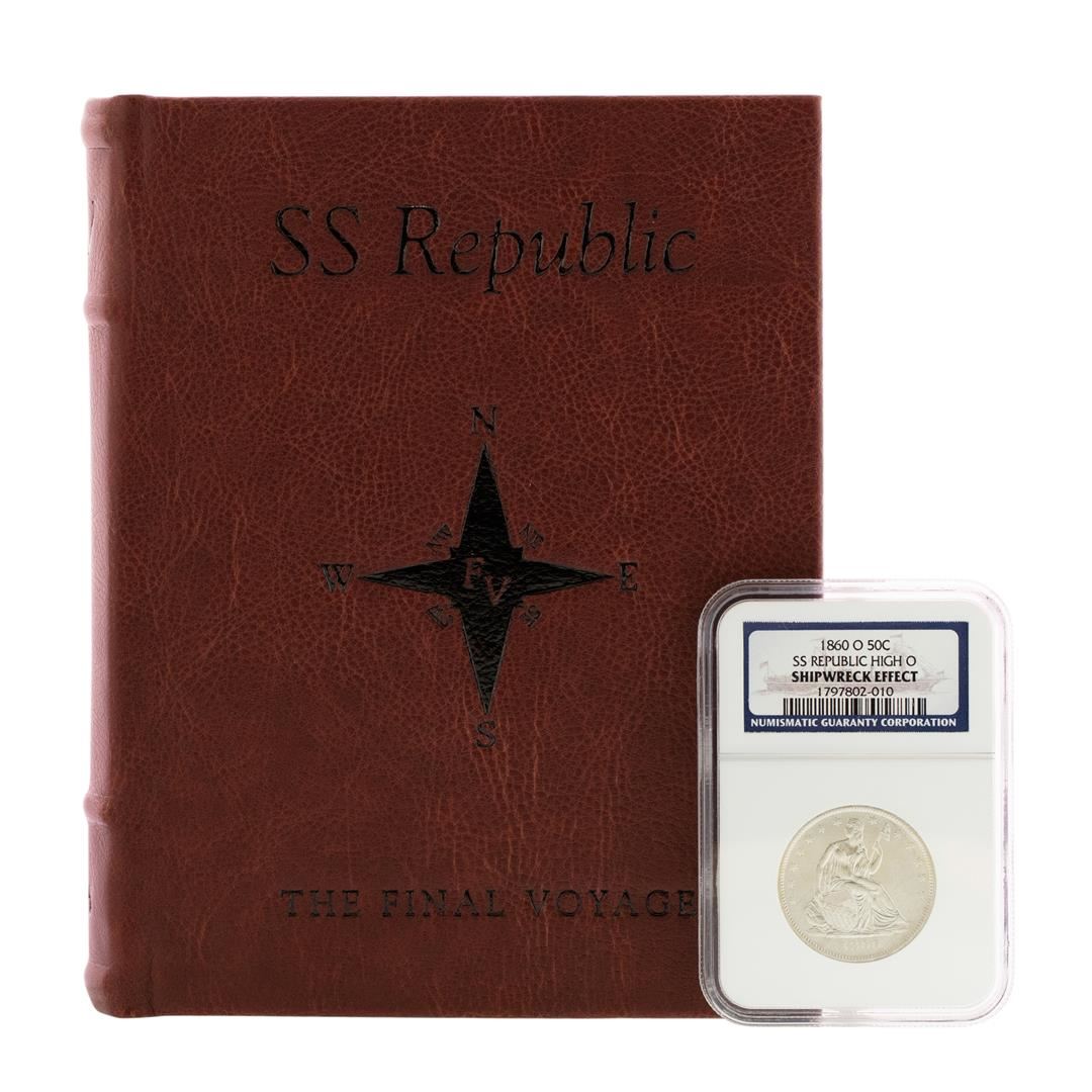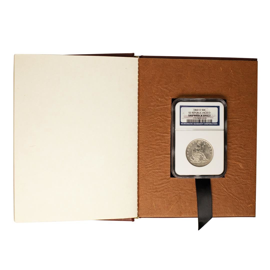One 1860-O High O SS Republic Seated Liberty Half Dollar Coin NGC Shipwreck Effect w/Book. NGC Certified.