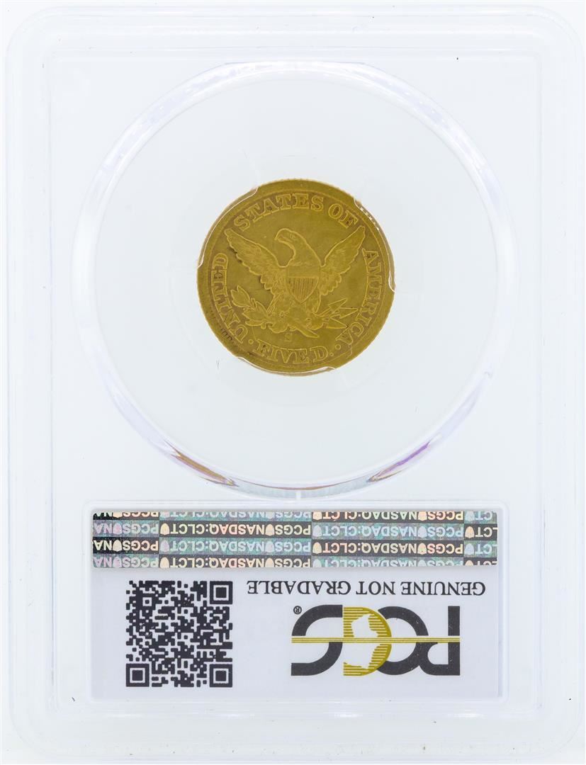 One 1860-S $5 Liberty Head Half Eagle Gold Coin PCGS Genuine Details. PCGS Graded.