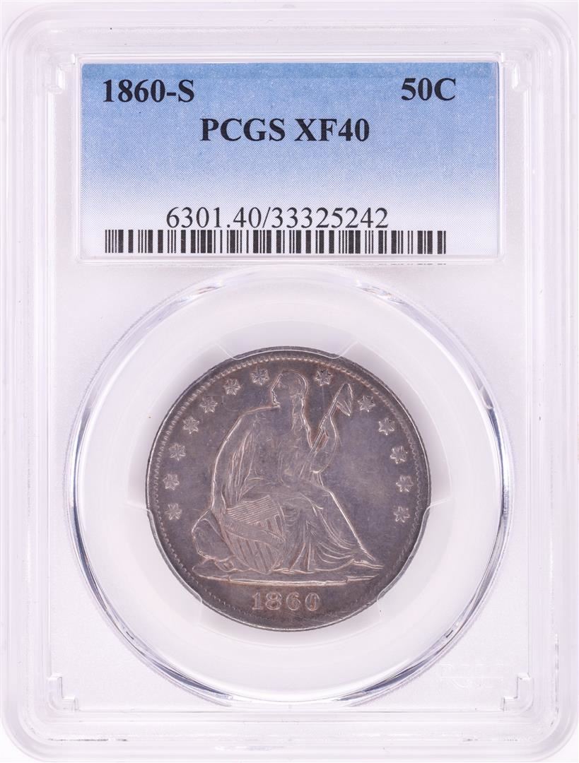 One 1860-S Seated Liberty Half Dollar Coin PCGS XF40. PCGS Graded.