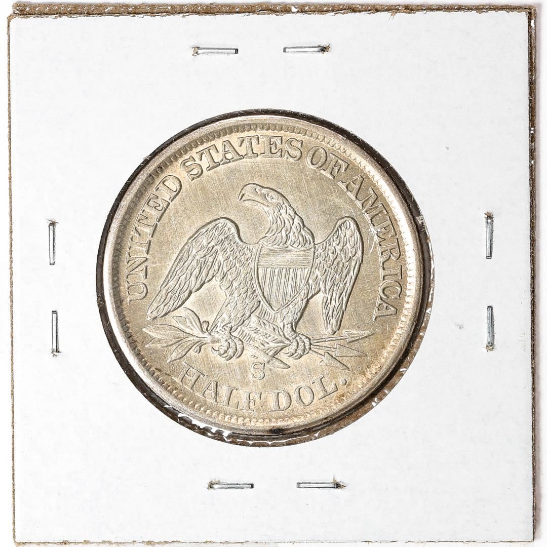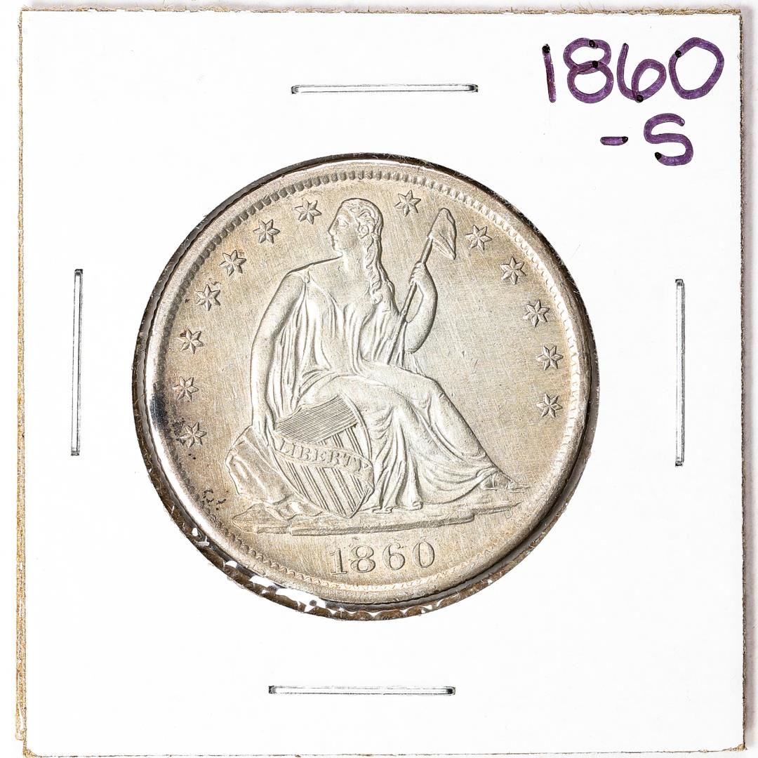 One 1860-S Seated Liberty Half Dollar Coin.