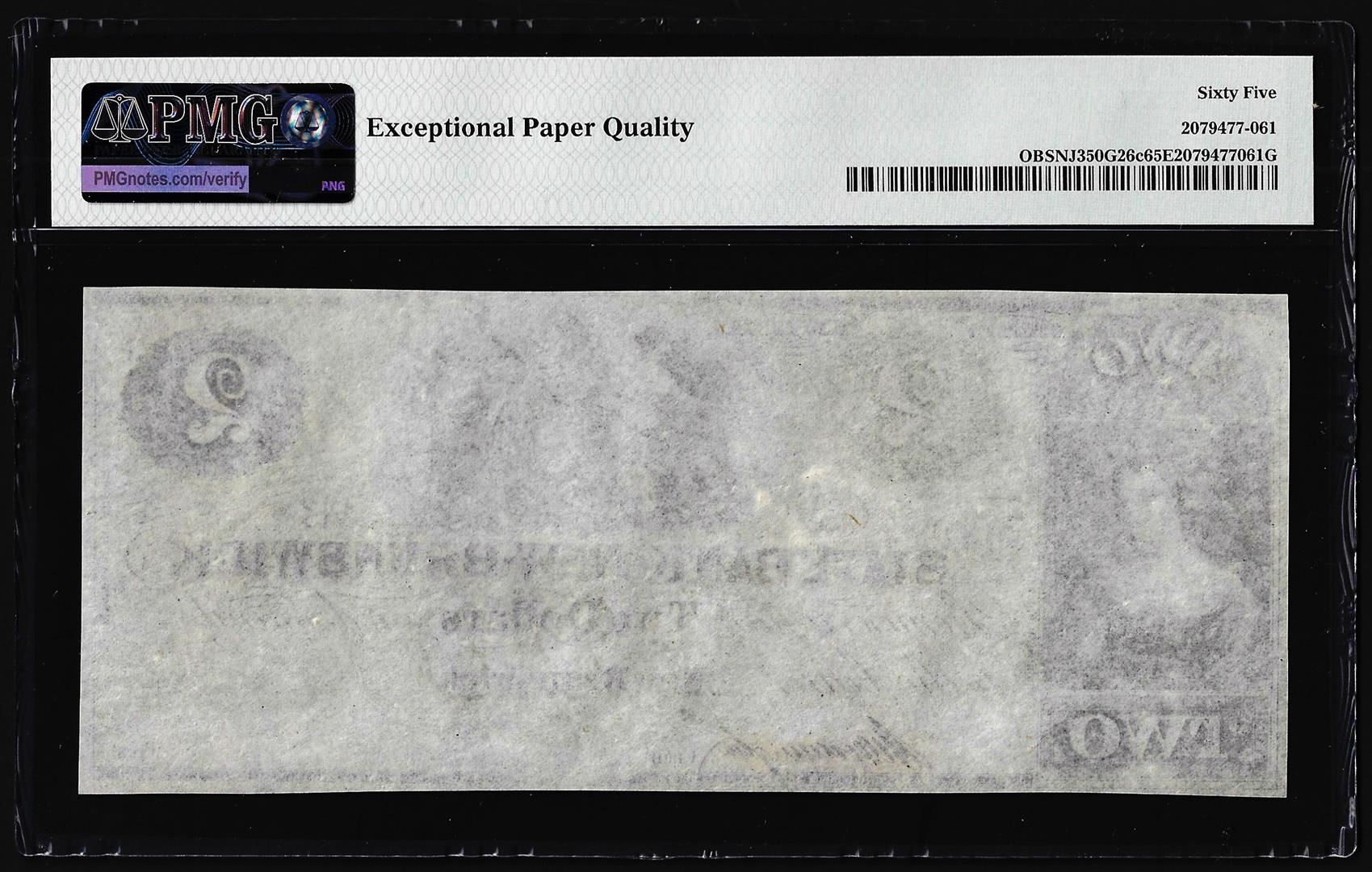 1860's $2 State of New Brunswick New Jersey Obsolete Note PMG Gem Uncirculated 65EPQ