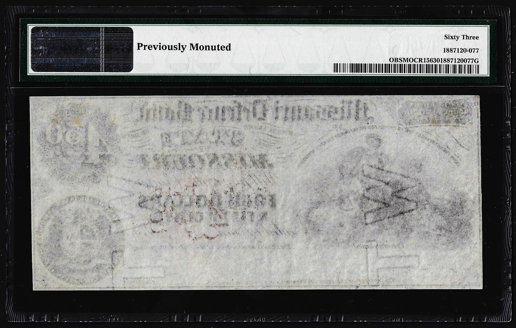 One 1860's $4.50 State of Missouri Defence Bond Obsolete Note PMG Choice Uncirculated 63. PMG Certified.