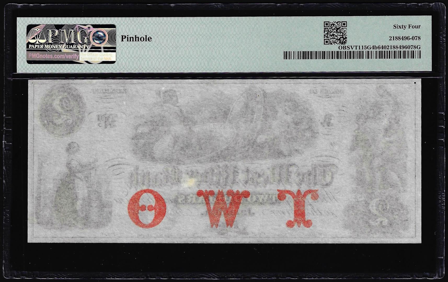 1860s $2 West River Bank Jamaica Obsolete Remainder Note PMG Choice Uncirculated 64