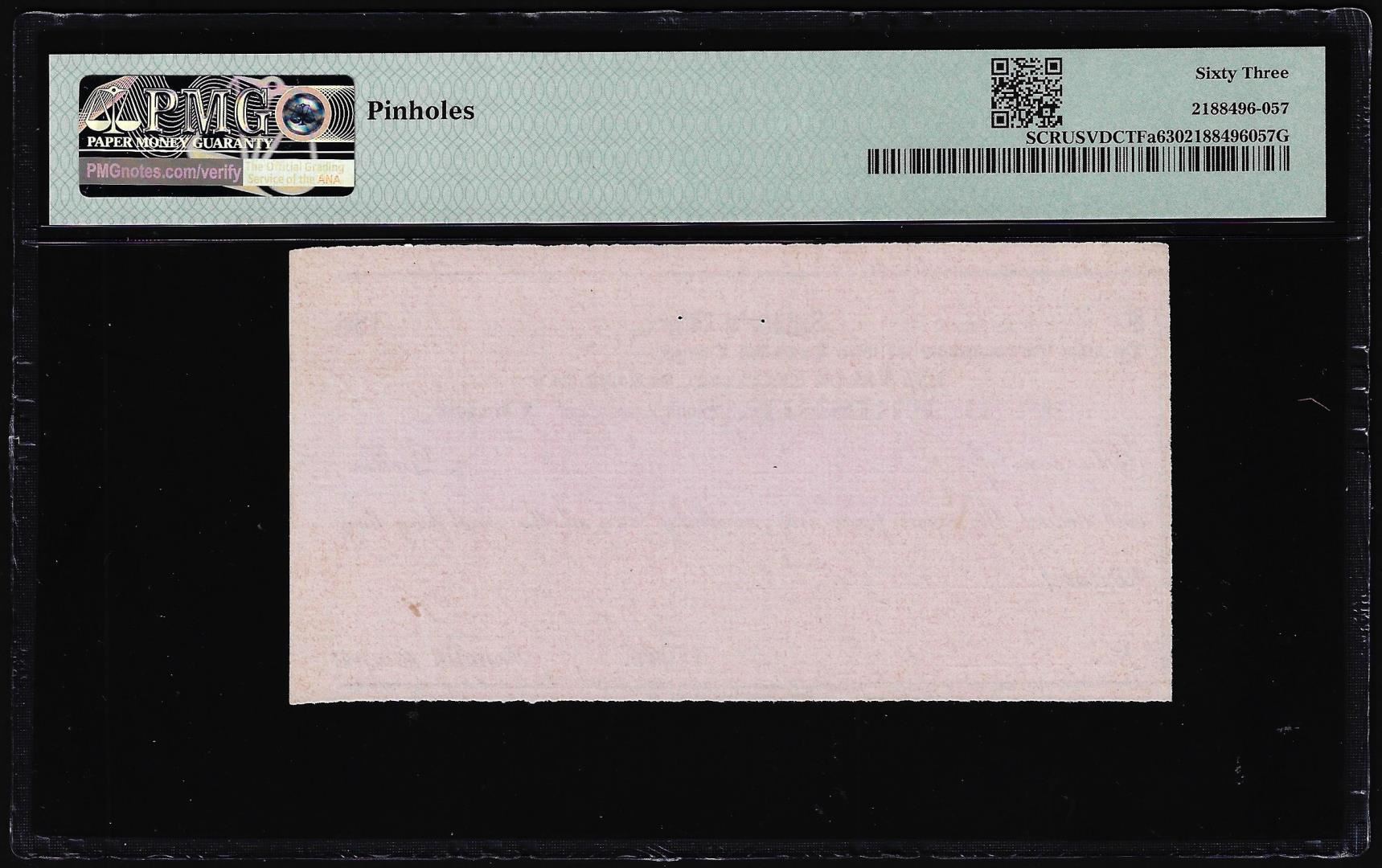 One 1860s U.S. Army F.B. Frisbie "Sutler Scrip" Note PMG Choice Uncirculated 63. PMG Certified.