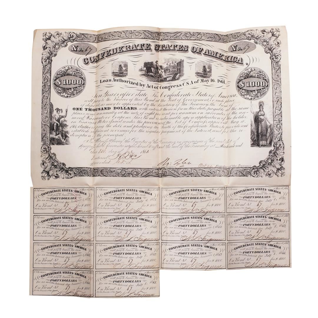 One 1861 $1,000 Confederate Bond Obsolete Sheet B-25.
