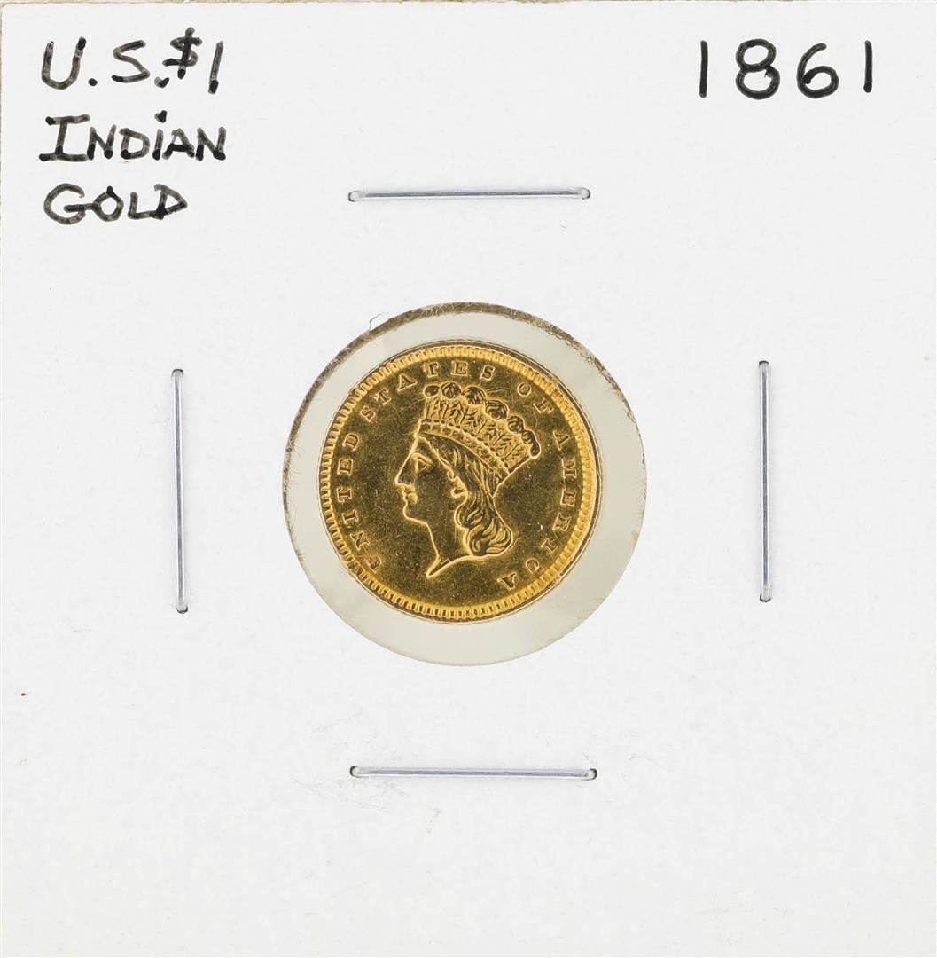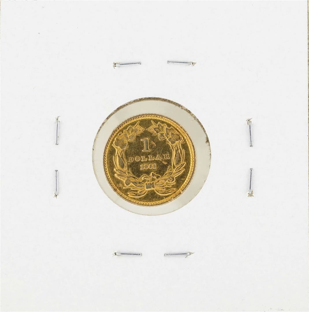 One 1861 $1 Indian Princess Head Gold Dollar Coin.