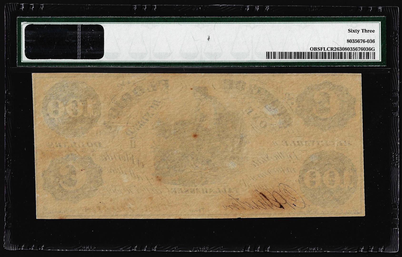 One 1861 $100 State of Florida Tallahassee Cr.2 Obsolete Note PMG Choice Uncirculated 63. PMG Certified.