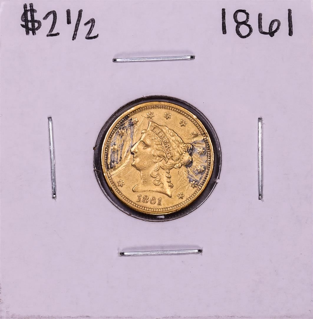 One 1861 $2 1/2 Liberty Head Quarter Eagle Gold Coin.