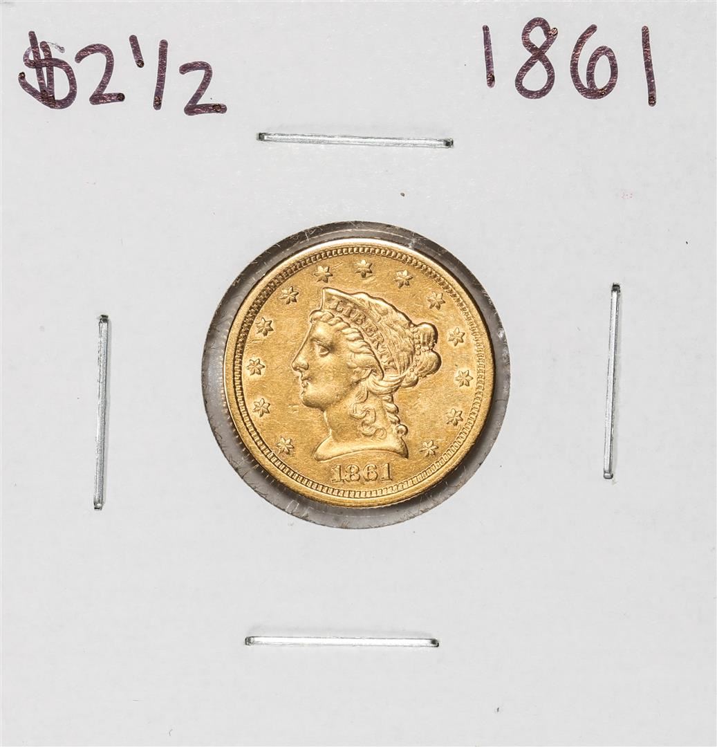 One 1861 $2 1/2 Liberty Head Quarter Eagle Gold Coin.