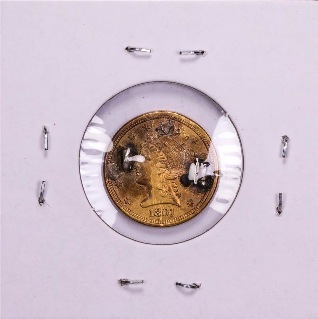 One 1861 $2 1/2 Liberty Head Quarter Eagle Gold Love Token Coin.