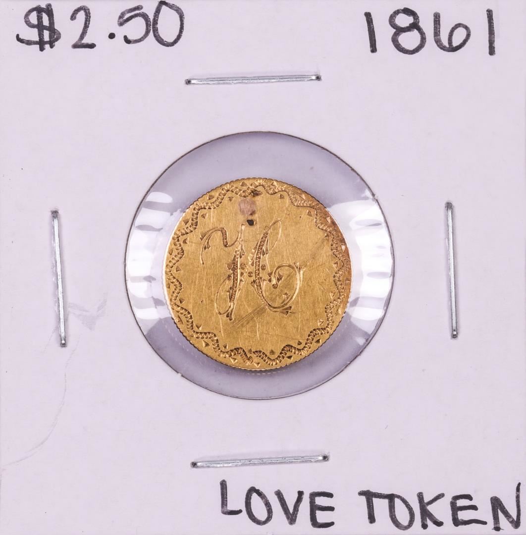 1861 $2 1/2 Liberty Head Quarter Eagle Gold Love Token Coin