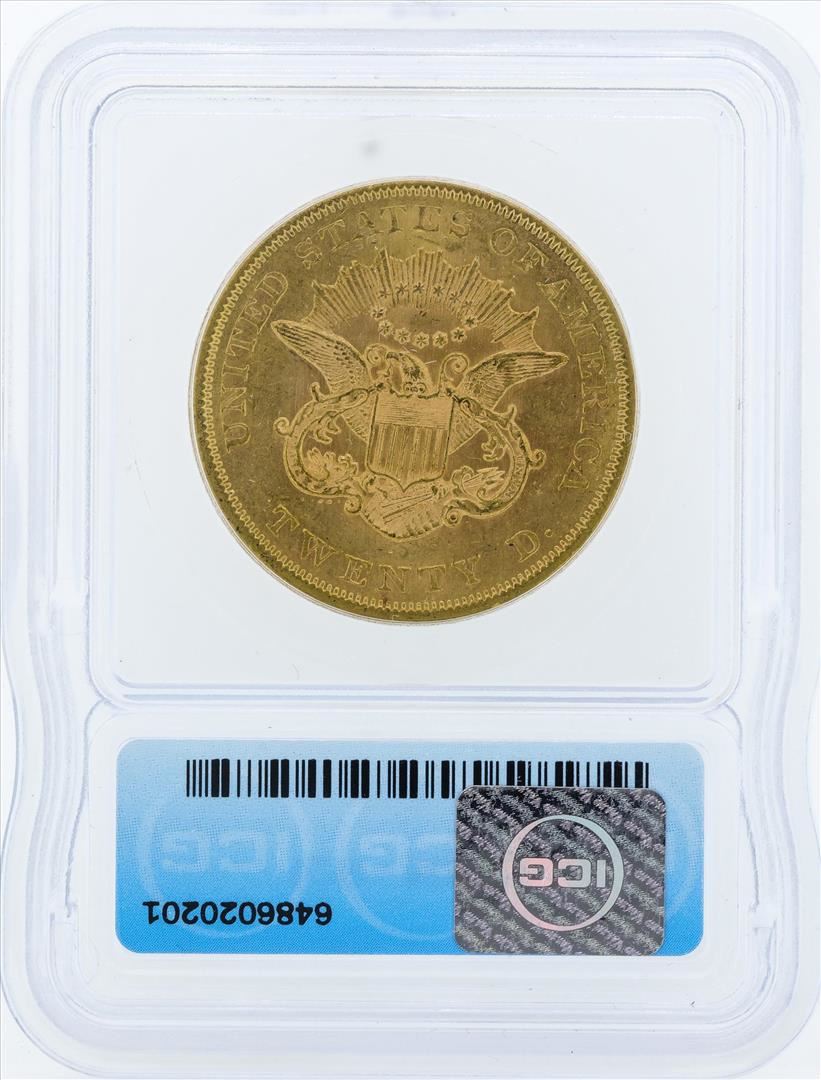 One 1861 $20 Liberty Head Double Eagle Gold Coin ICG MS60. ICG Certified.
