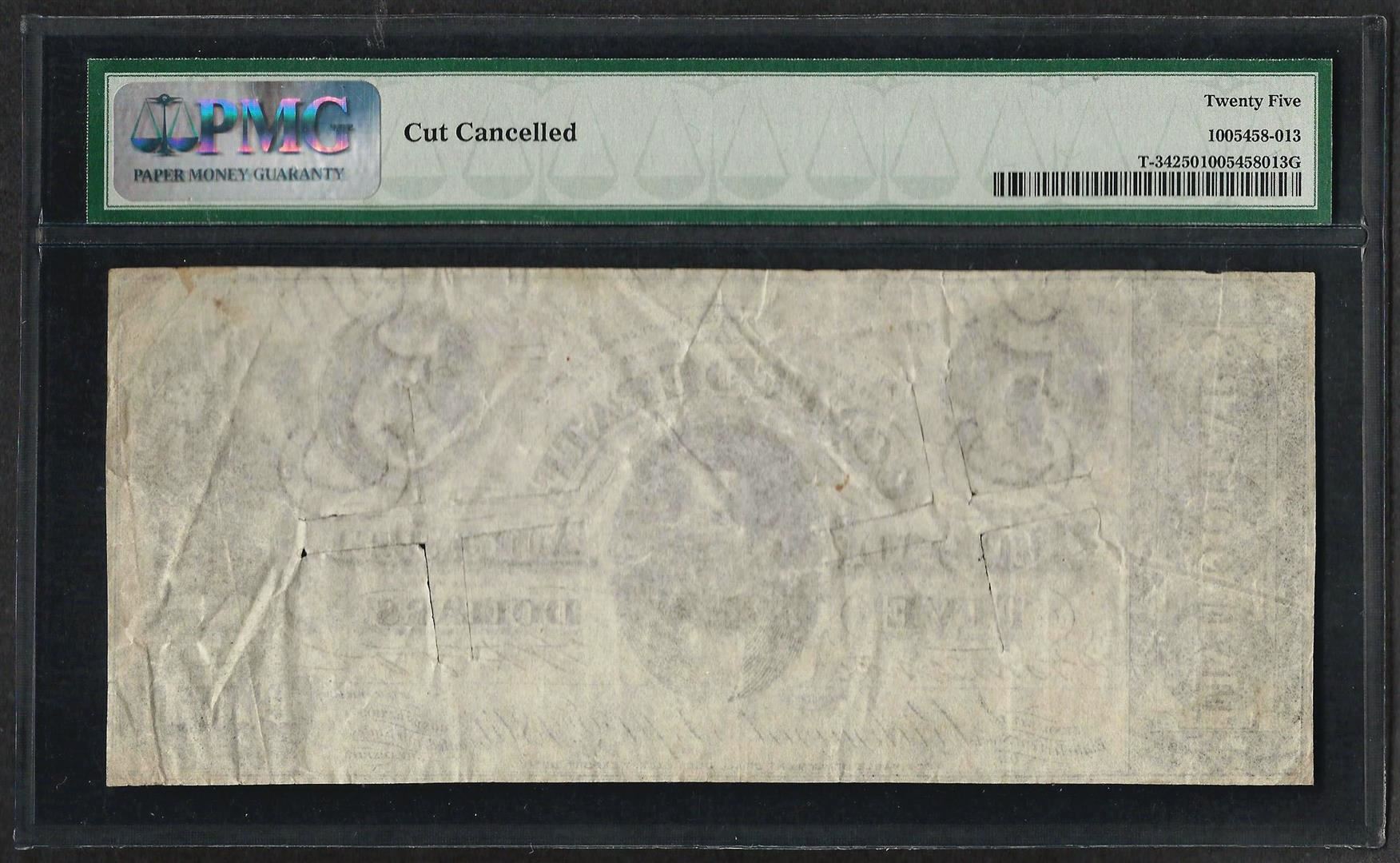 1861 $5 Confederate States of America Note T-34 PMG Very Fine 25 Canceled
