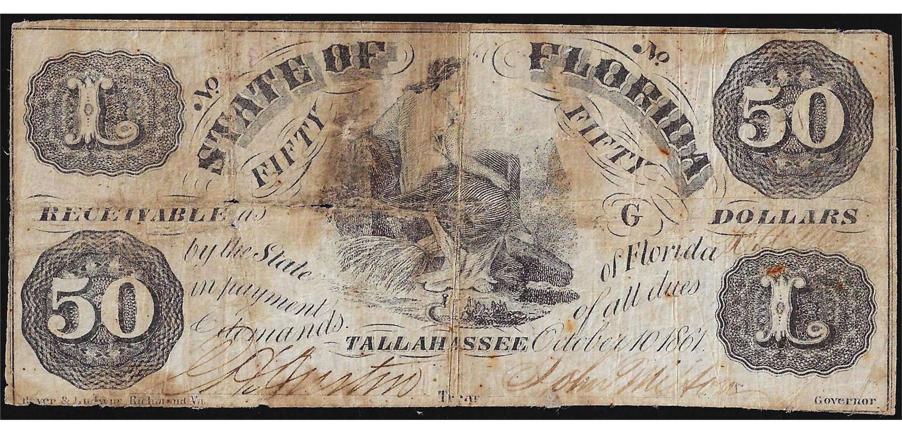One 1861 $50 State of Florida Tallahassee Obsolete Note.