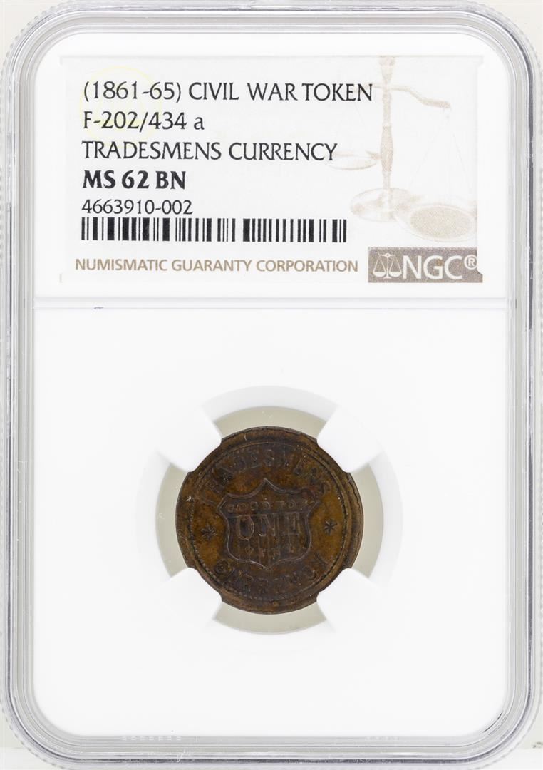 One 1861-65 Civil War Token Tradesmens Currency NGC MS62BN. NGC Certified.