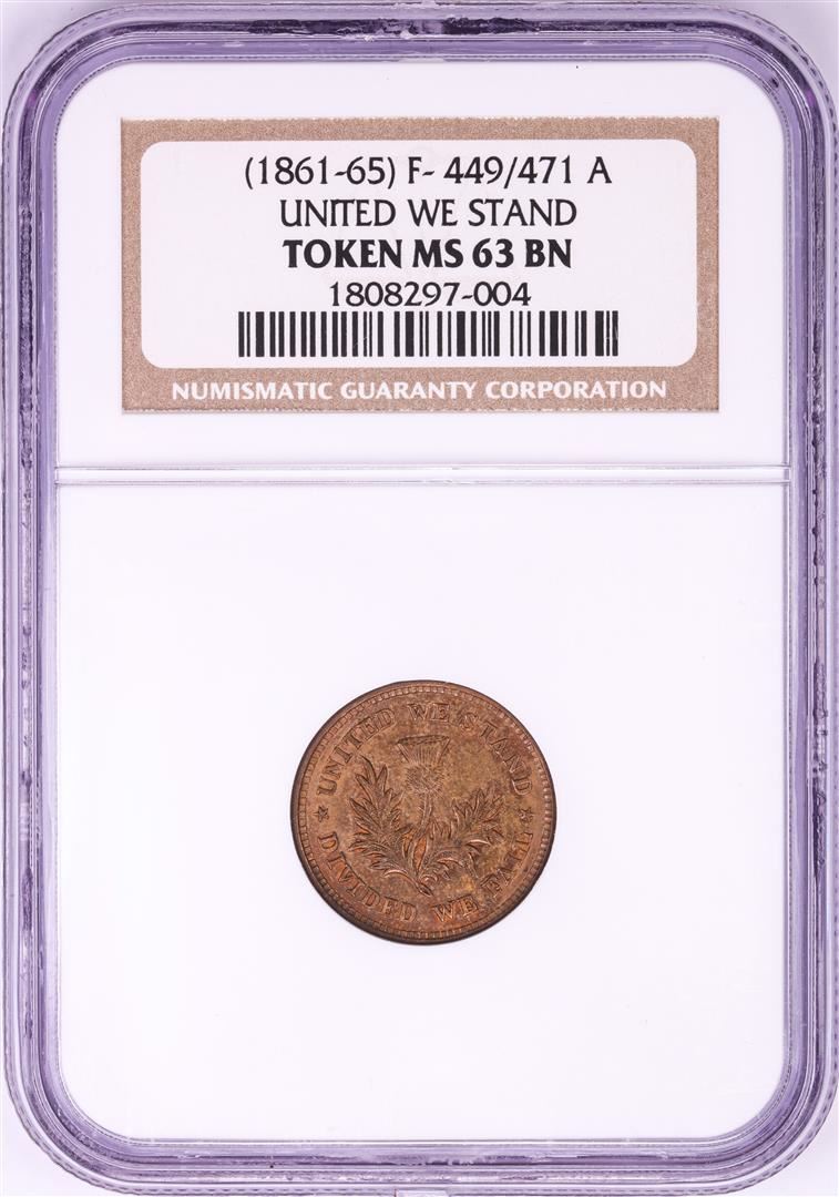 One 1861-65 United We Stand Civil War Token NGC MS63 BN F-449/471a. NGC Certified.
