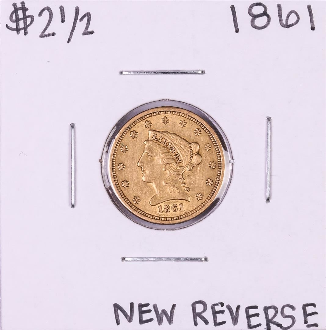 One 1861 New Reverse $2 1/2 Liberty Head Quarter Eagle Gold Coin.
