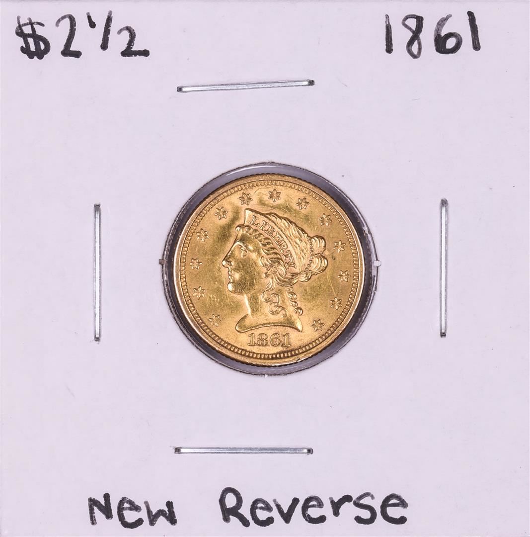 One 1861 New Reverse $2 1/2 Liberty Head Quarter Eagle Gold Coin.