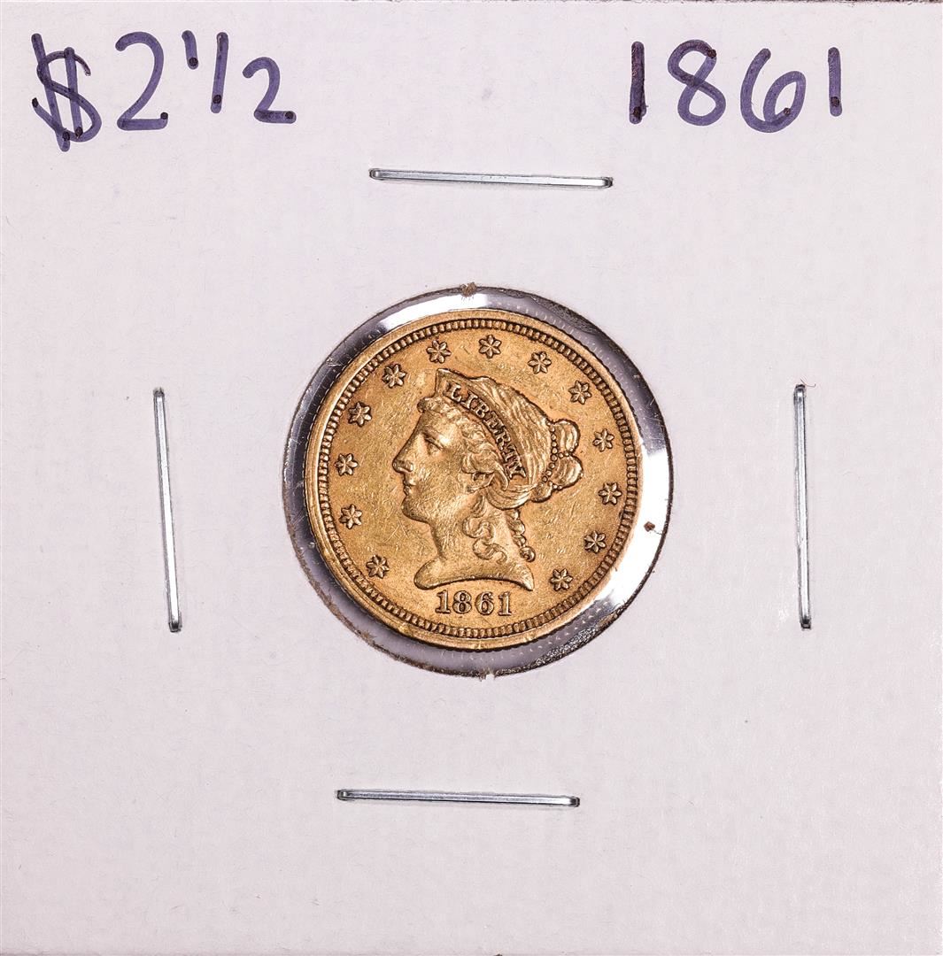 One 1861 New Reverse $2 1/2 Liberty Head Quarter Eagle Gold Coin.