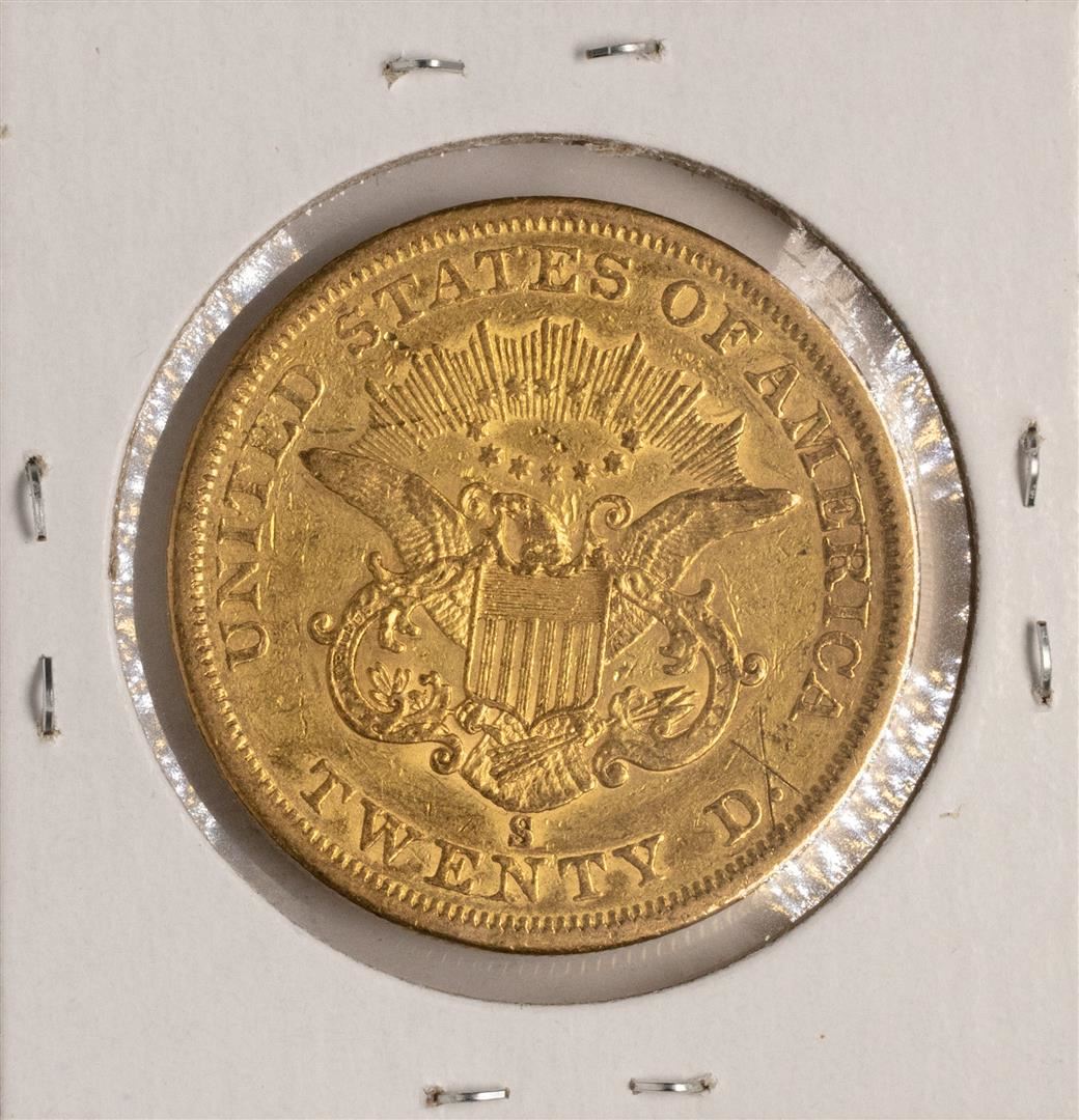 One 1861-S $20 Liberty Head Double Eagle Gold Coin.