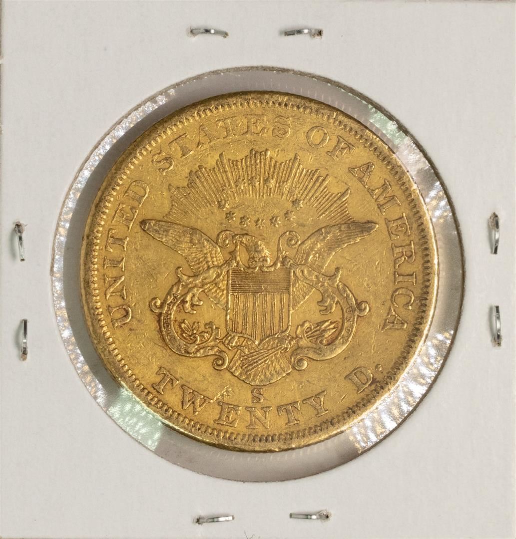 One 1861-S $20 Liberty Head Double Eagle Gold Coin.