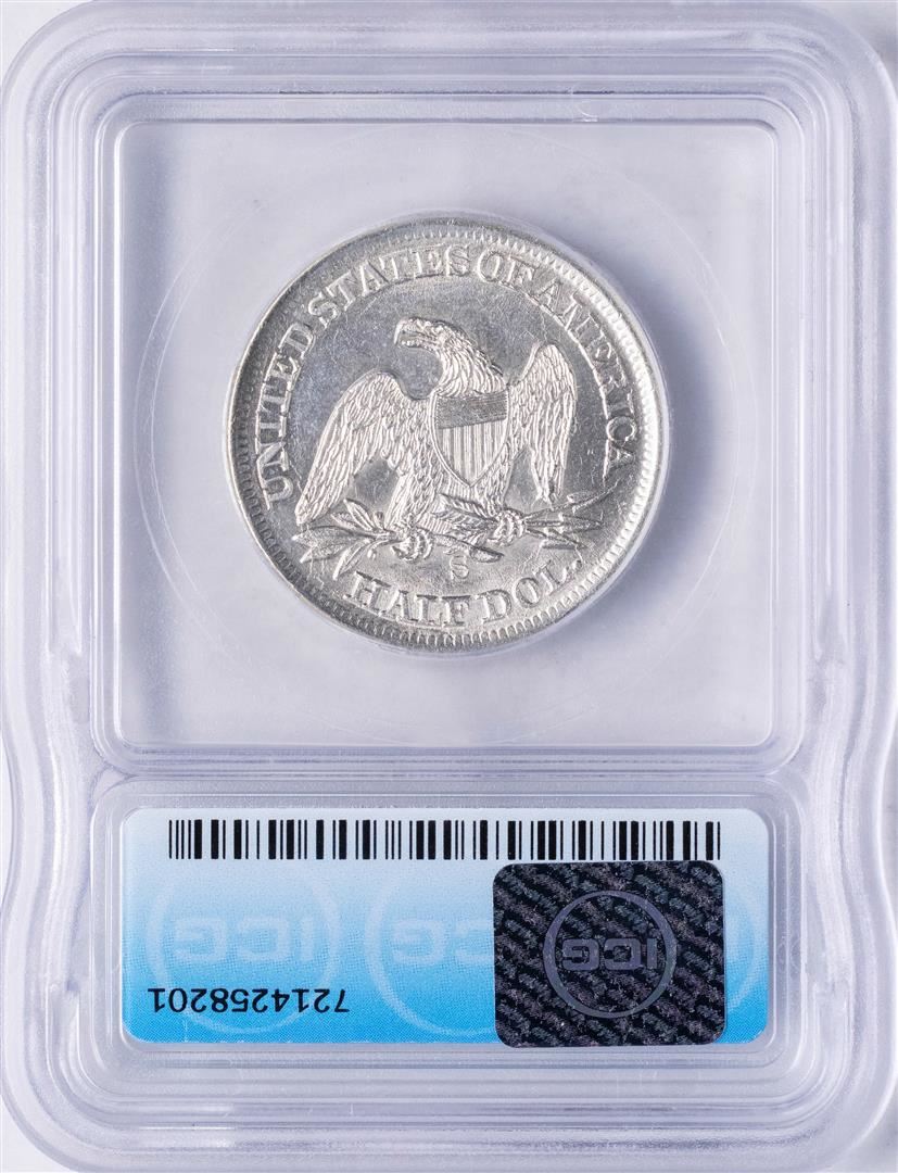One 1861-S Seated Liberty Half Dollar Coin ICG AU58 Details. ICG Certified.
