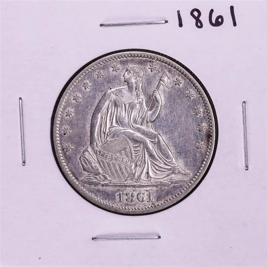 One 1861 Seated Liberty Half Dollar Coin.