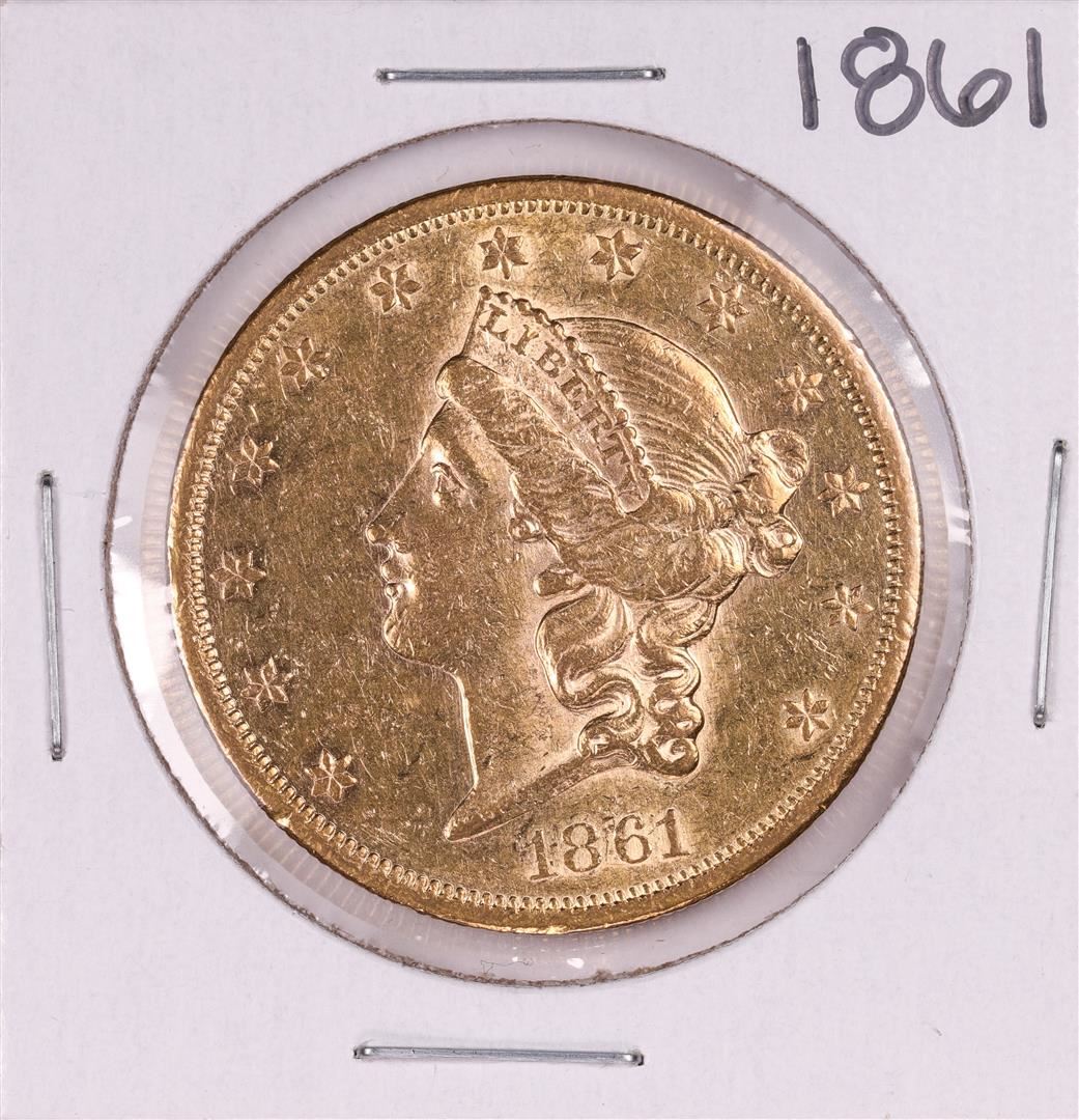 One 1861 Type 1 $20 Liberty Head Double Eagle Gold Coin.