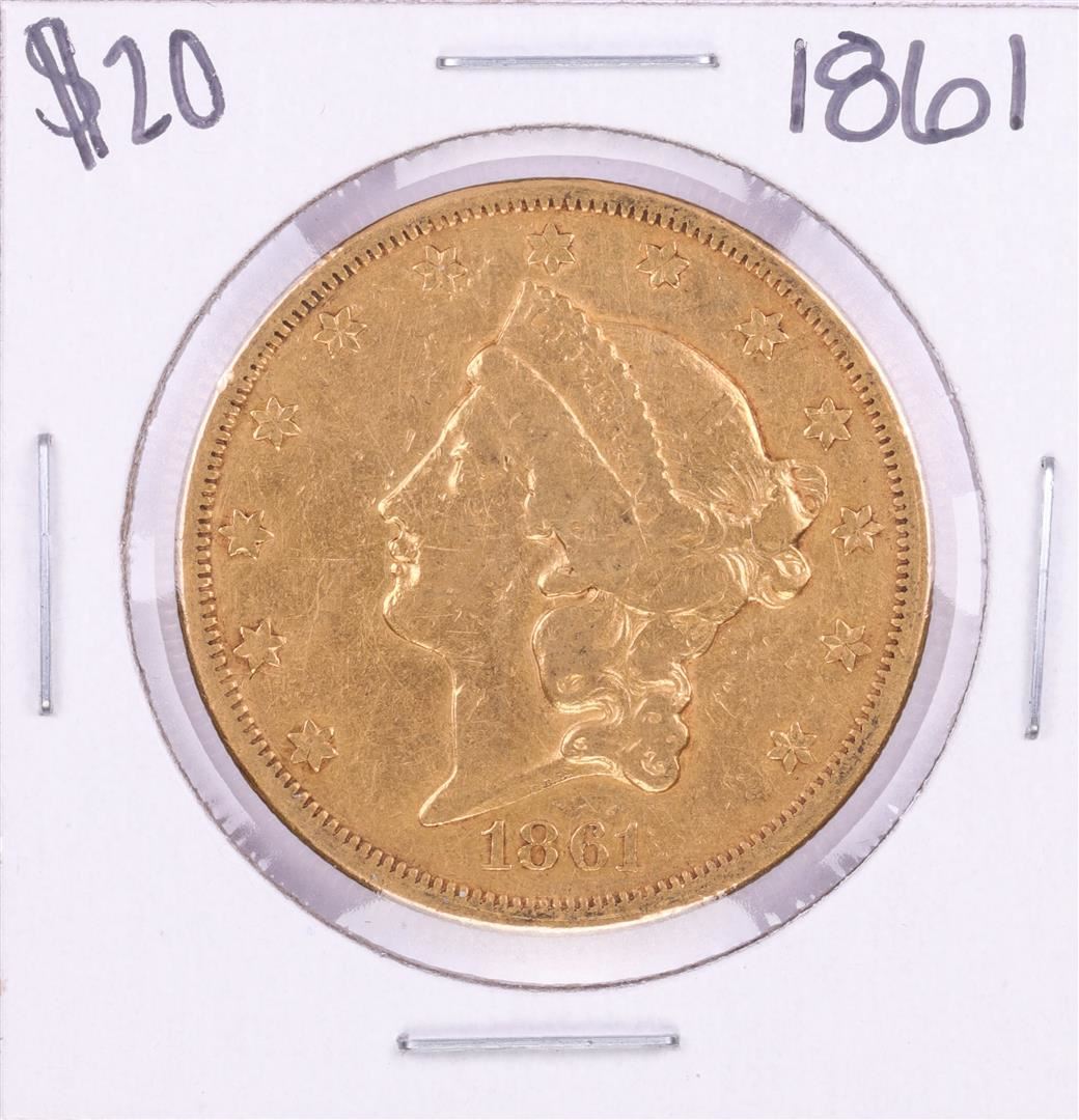 One 1861 Type 1 $20 Liberty Head Double Eagle Gold Coin.