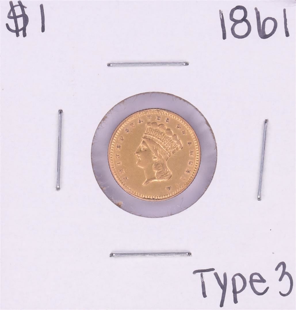 One 1861 Type 3 $1 Liberty Head Gold Coin.