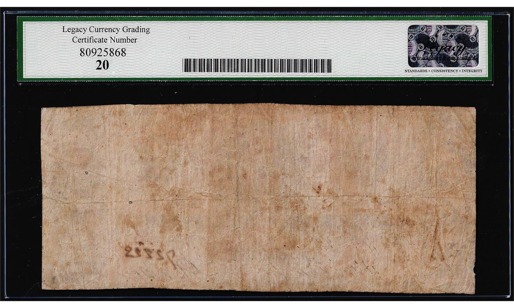 Any coins sold referencing a third-party grading service are sold AS IS without any express or implied warranty. Notes sold referencing a third-party grading service are sold AS IS without any express or implied warranty. Grading, condition or other attributes of any lot may have a material effect on its value, and the opinion of others, including third-party grading services may differ with that of BKA. BKA shall not be bound by any prior or subsequent opinion, determination, or certification by any grading service. Bidder specifically waives any claim to right of return of any item because of the opinion, determination, or certification, or lack thereof, by any grading services. Third-party graded notes are not returnable for any reason whatsoever.