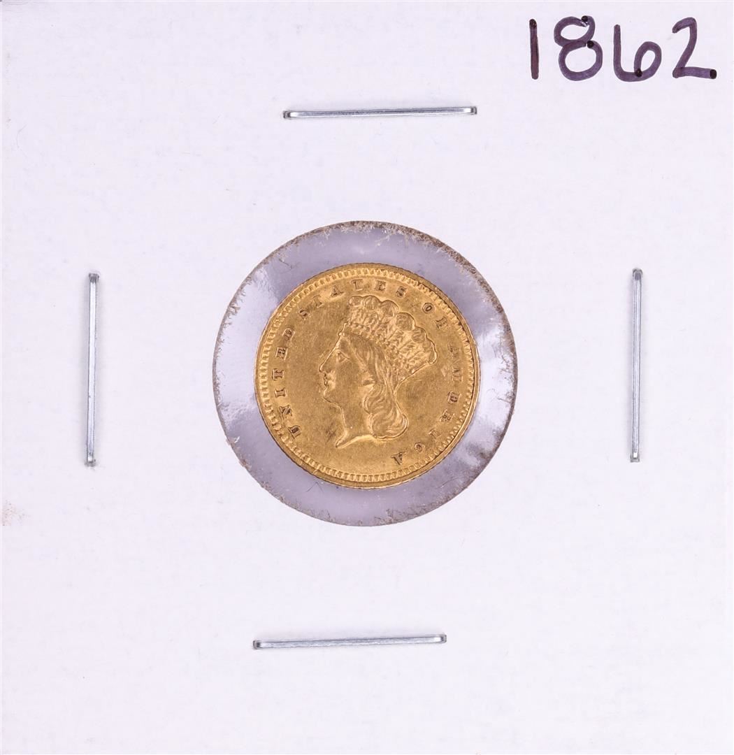 One 1862 $1 Indian Princess Head Gold Dollar Coin.