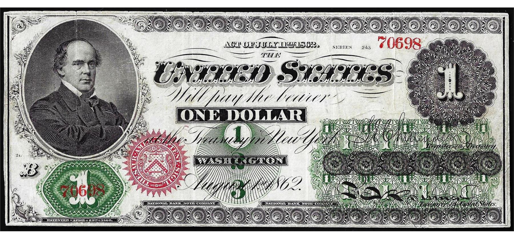 One 1862 $1 Legal Tender Note.