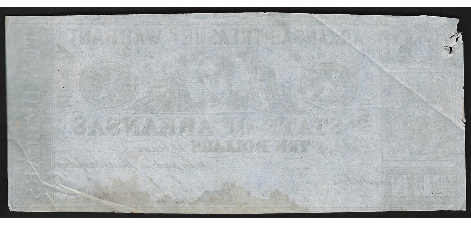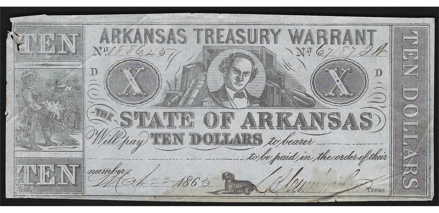 One 1862 $10 State of Arkansas Treasury Warrant Note.