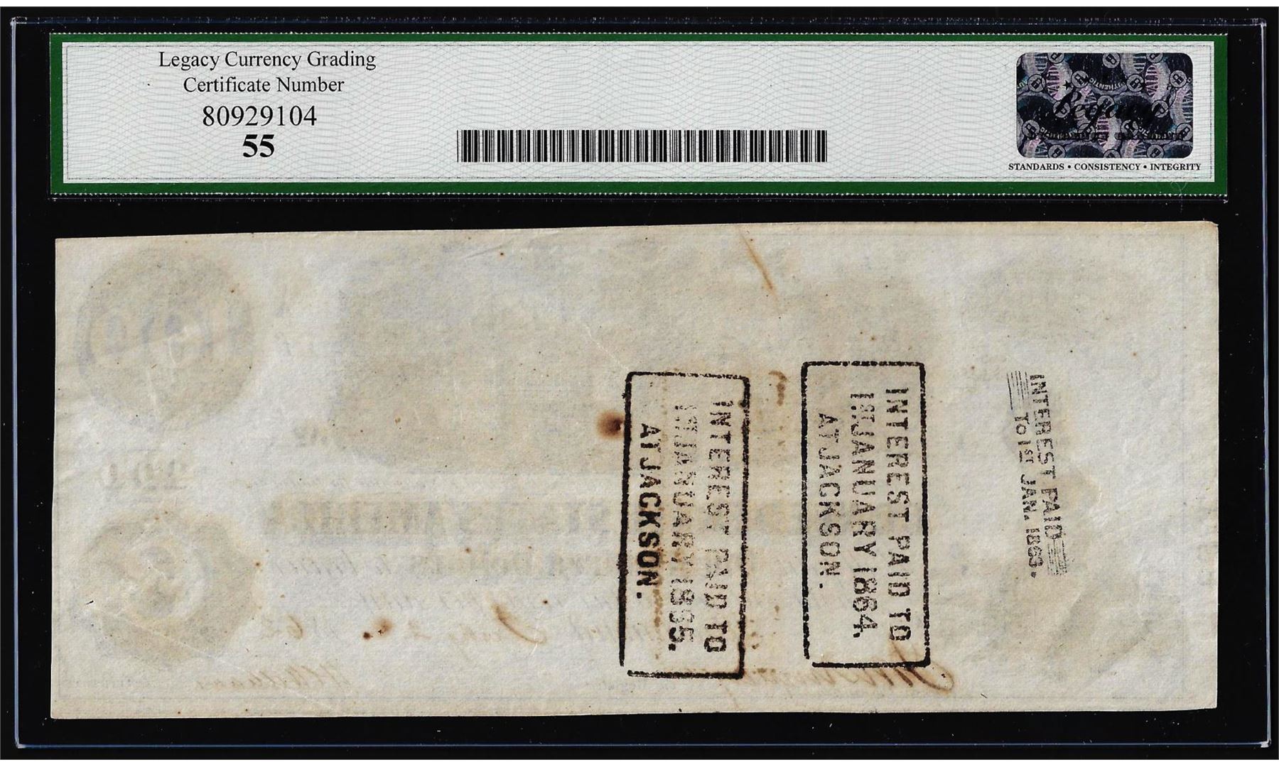 One 1862 $100 Confederate States of America Note T-39 Legacy Choice About New 55. Legacy Graded.