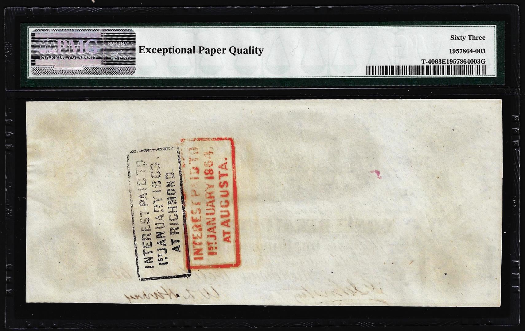 1862 $100 Confederate States of America Note T-40 PMG Choice Uncirculated 63EPQ