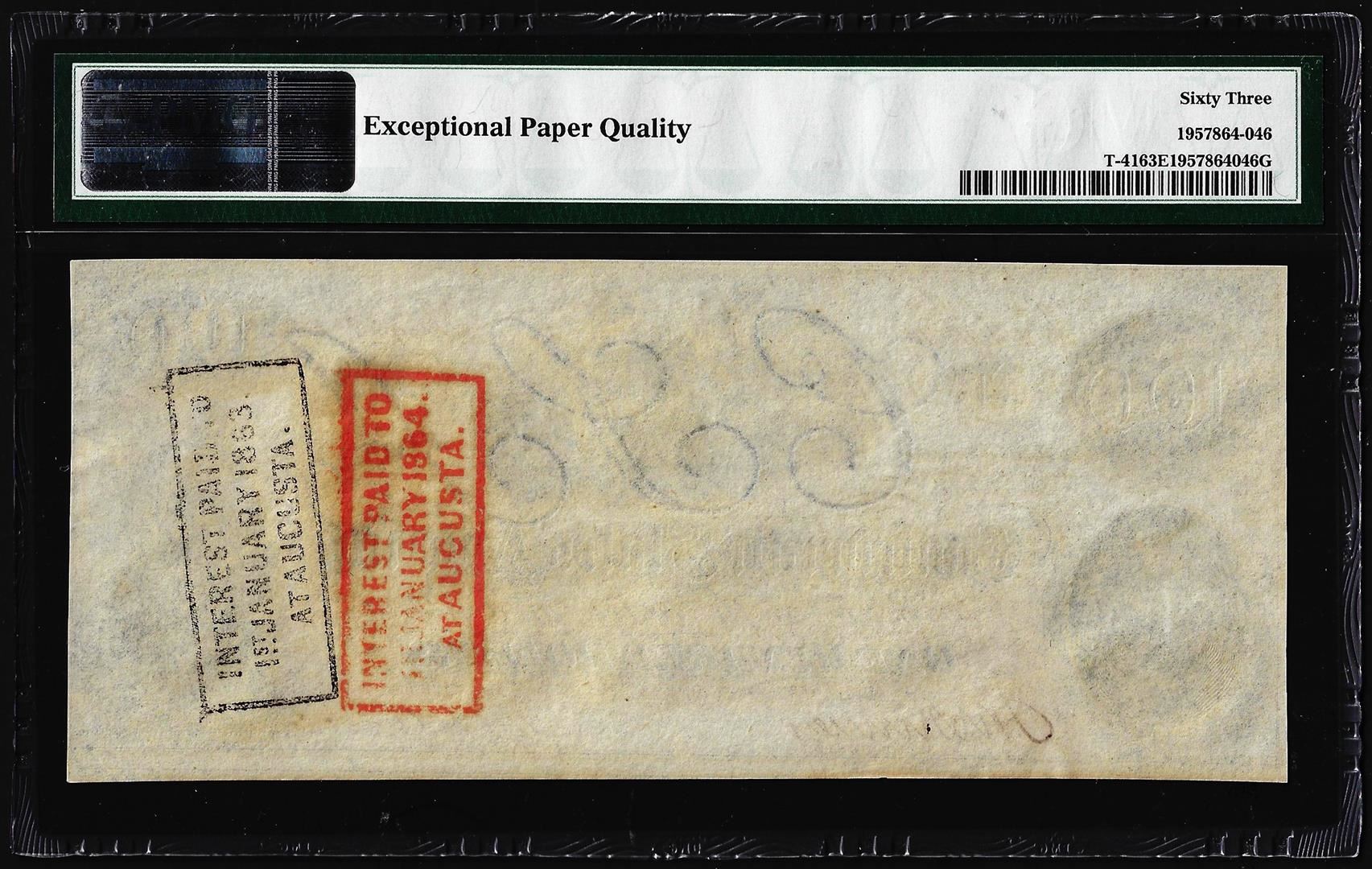 1862 $100 Confederate States of America Note T-41 PMG Choice Uncirculated 63EPQ